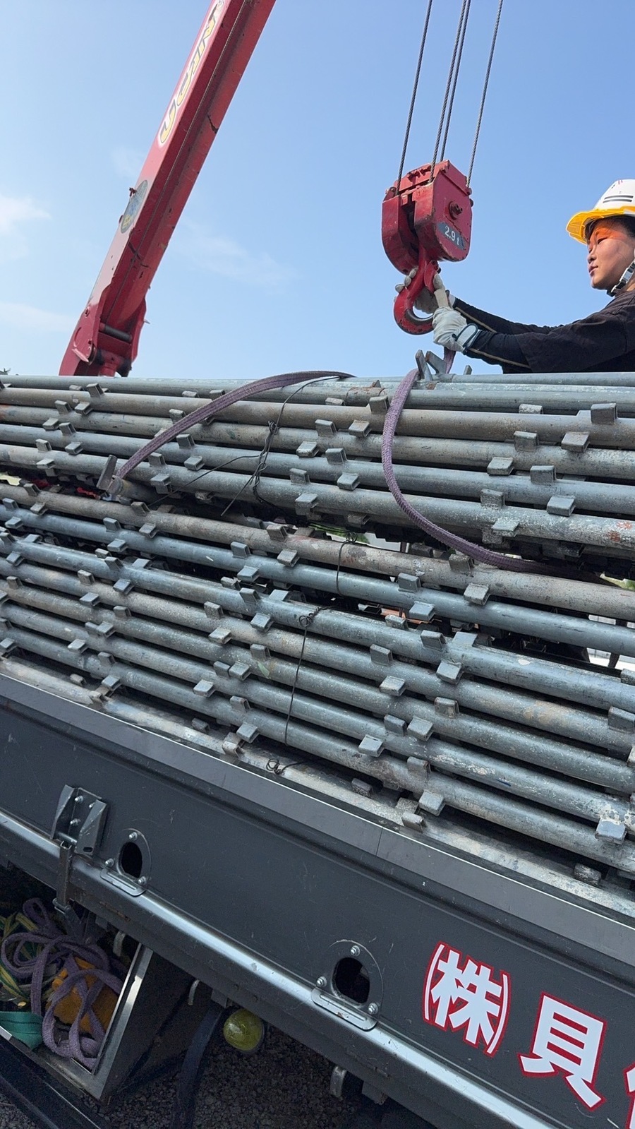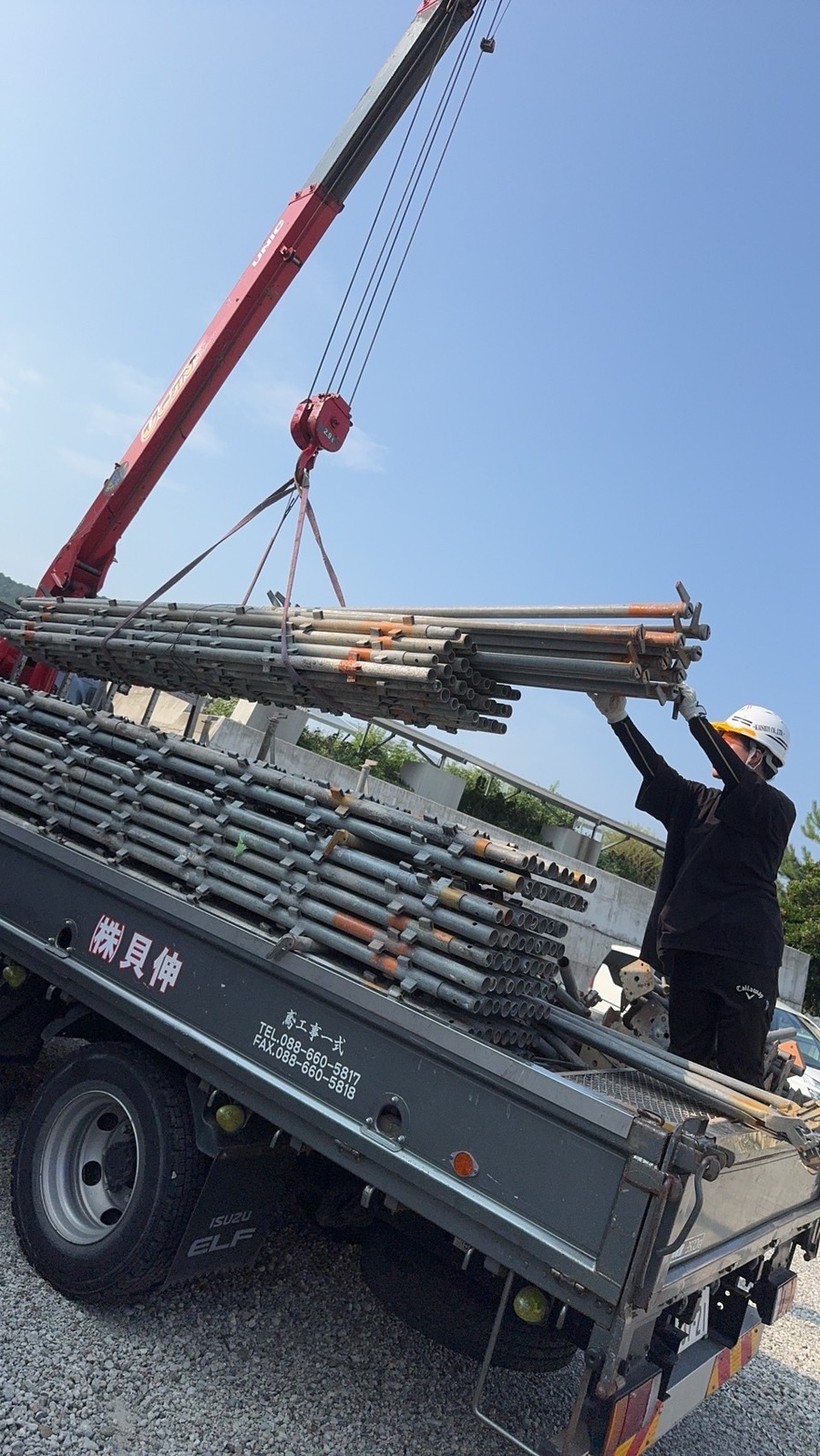 真夏で、気温は体温超えでしたが、事務員さんも一生懸命資材を運びました!